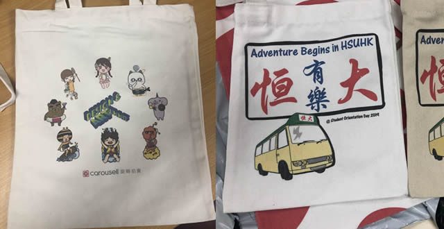 最近, 有些客戶的圖案都比較多色, 複雜, 有些可以有8-10 色, 在以前來說, 除了覆膜, 沒其他方法了, 不過, 現在, 我們引入了數碼彩印, 總體價格和絲印沒差多少 (因為絲印要做絲網, 價格一般是一個$200), 當然, 也有差點, 例如布料的顏色最好是淺色或是白色,